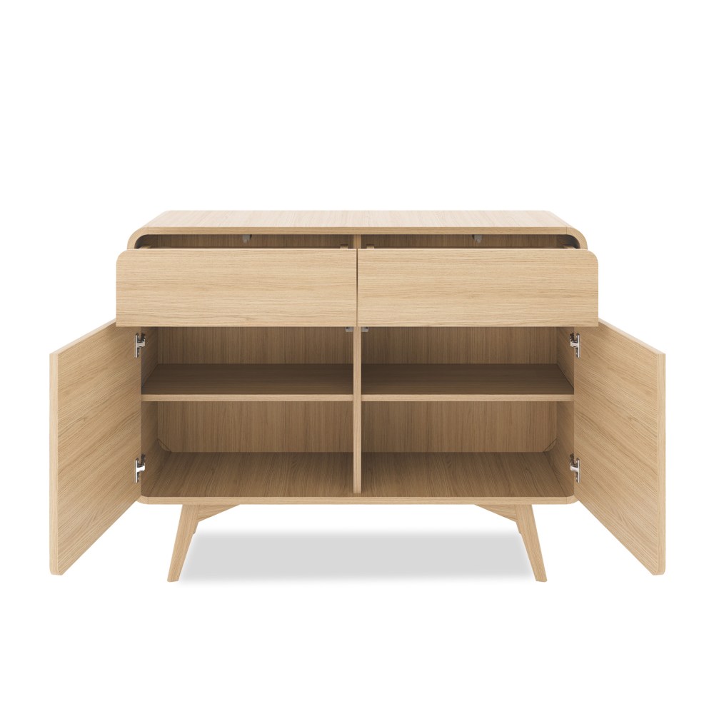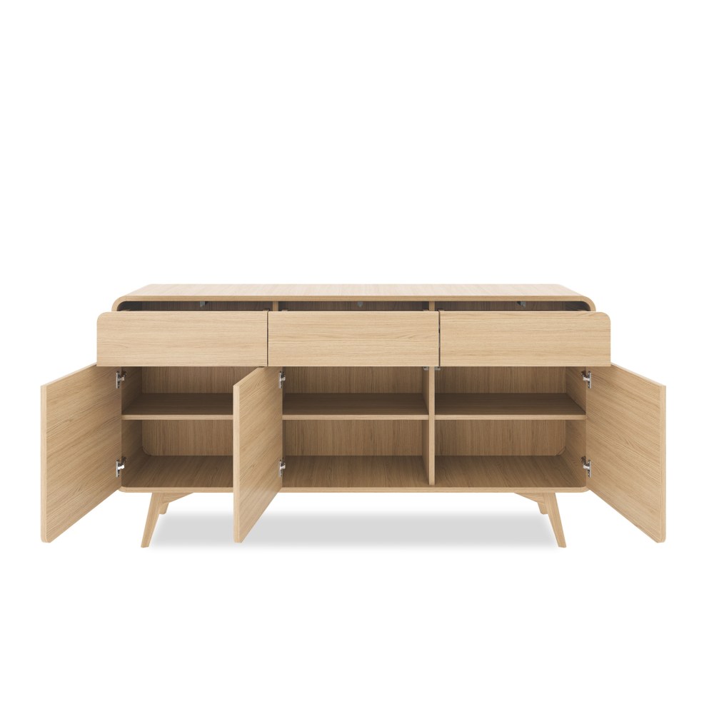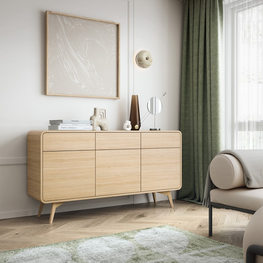 O Aparador Helion apresenta um design contemporâneo, proporcionando uma estética moderna e sofisticada para o seu espaço. A sua versatilidade de estilo permite a integração harmoniosa em vários tipos de decoração.