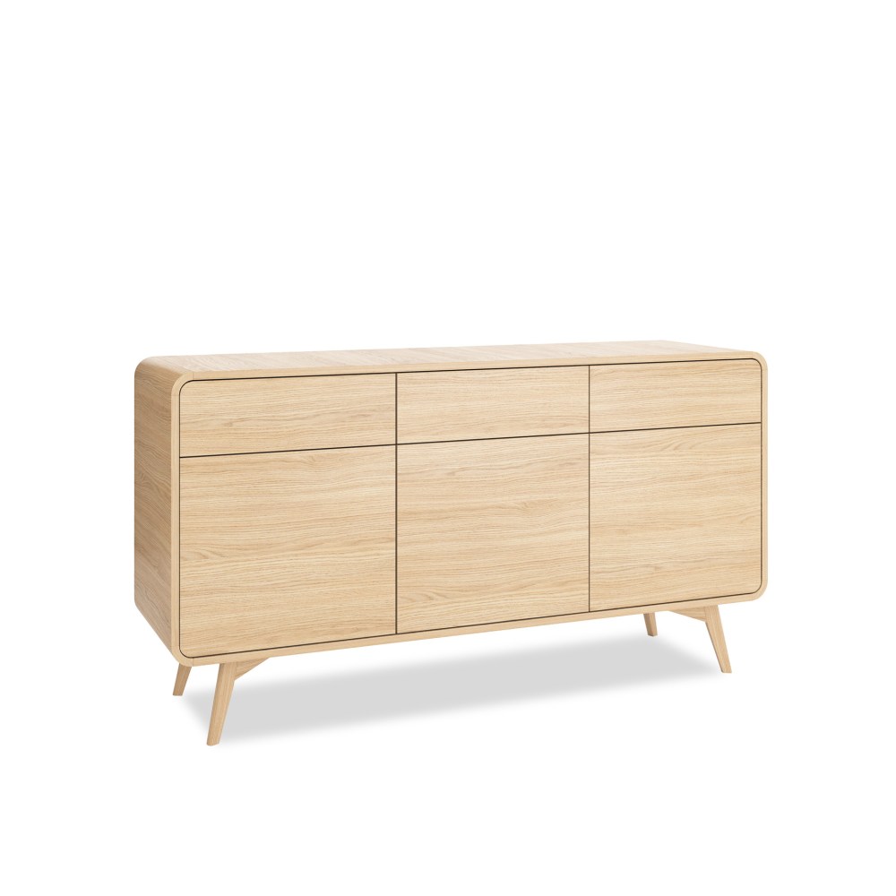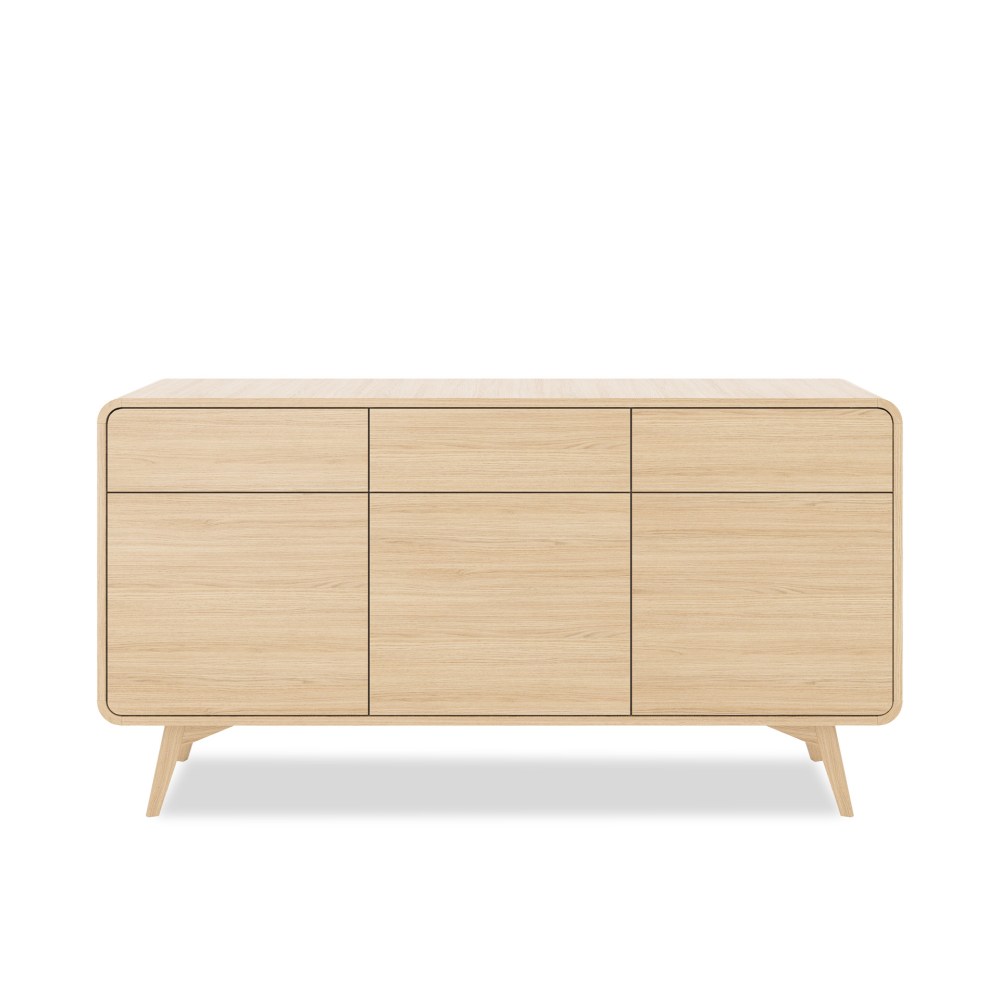 Com uma ampla superfície, o aparador oferece espaço generoso para exibir objetos decorativos, quadros, e até mesmo para servir como área de apoio prática. É projetado para oferecer um armazenamento prático, com compartimentos espaçosos para organizar diversos itens, mantendo ordem ao ambiente.