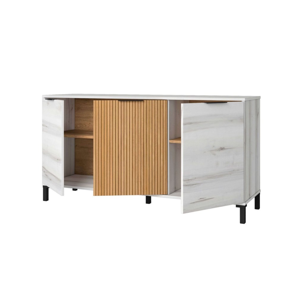Descubra o estilo contemporâneo com o nosso Aparador Tokio de 3 Portas de 136x70 cm. Projetado com uma combinação excepcional de Albo e Carvalho Listrado, este móvel transformará qualquer cômodo da sua casa, proporcionando uma solução prática de armazenamento. Com três portas grandes, oferece espaço generoso para organizar seus itens essenciais, mantendo a ordem visual. Suas pernas pretas adicionam um toque distinto e sólido, ideal para salas de estar, salas de jantar ou qualquer outro espaço. Feito de melamina, o modelo Tokio se destaca por sua praticidade e design moderno. Ideal para salas de estar, salas de jantar ou qualquer espaço onde você precise de armazenamento extra sem sacrificar o estilo. Medidas: Largura 136,3 cm Altura 70 cm Profundidade 40 cm Este móvel vem com um kit de montagem, que inclui um manual de instruções e ferragens.