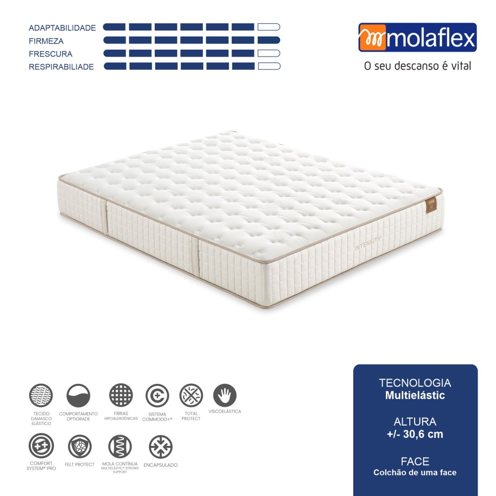 Durabilidade. Conta com um encapsulado em HR de alta densidade, que reforça toda a estrutura, assegura o máximo conforto e aumenta a durabilidade do colchão. O colchão Intensity foi pensado para proporcionar um descanso contínuo e confortável.