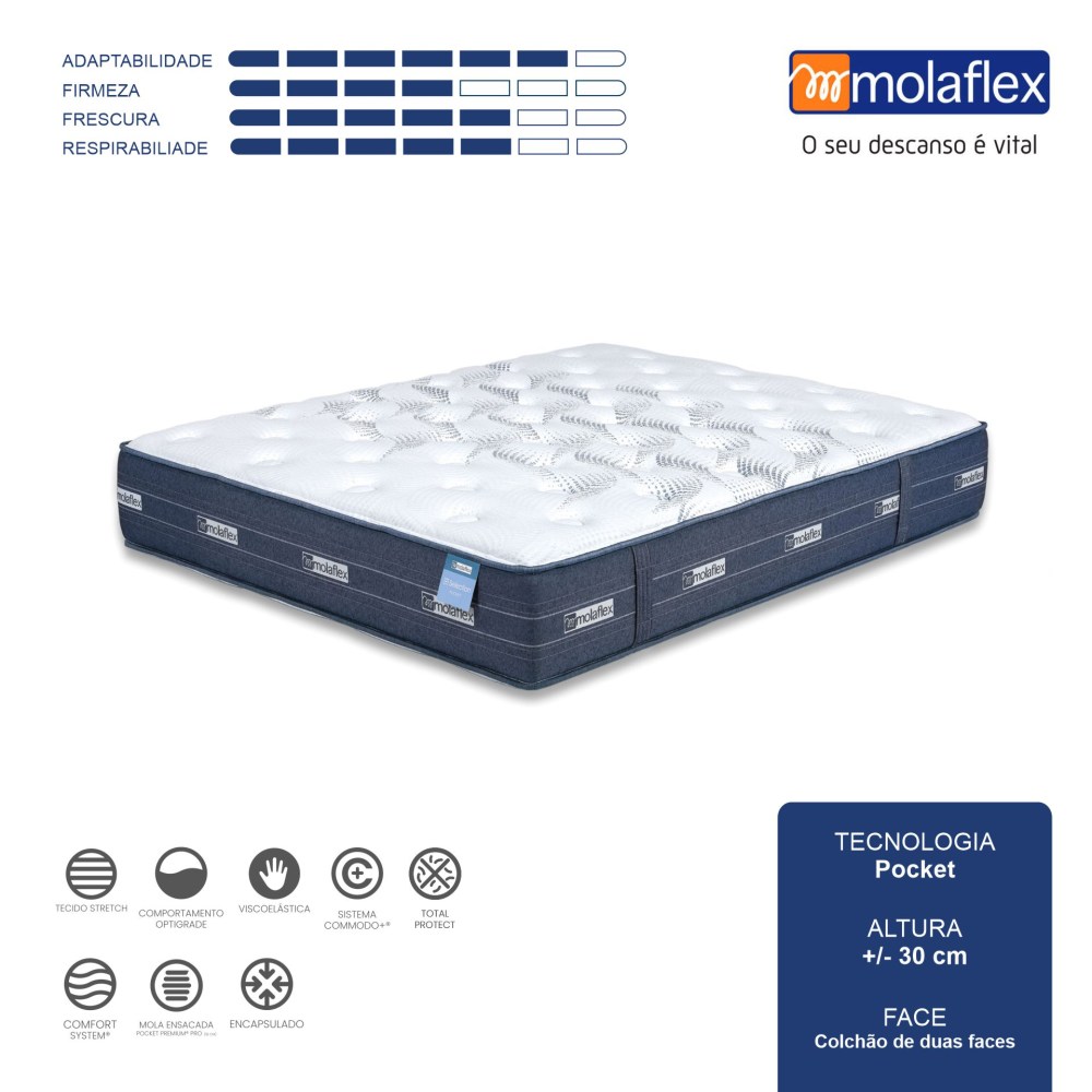 Tecido exclusivo e personalizado com a marca Molaflex® tornando o colchão distinto.