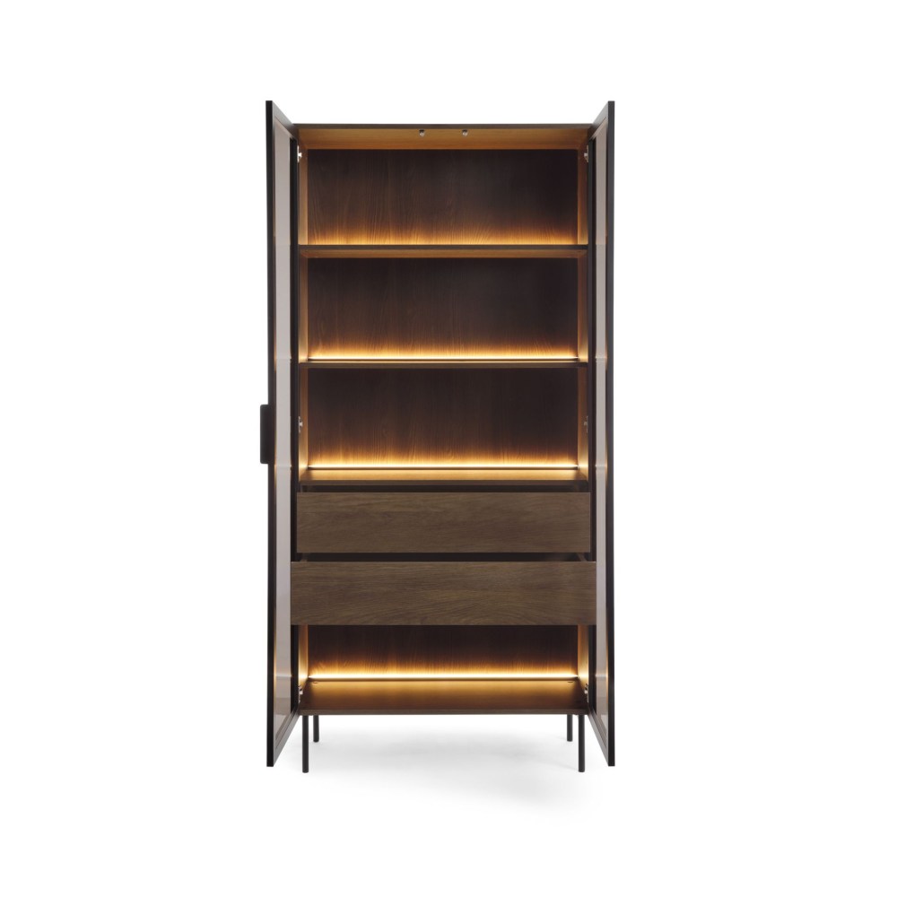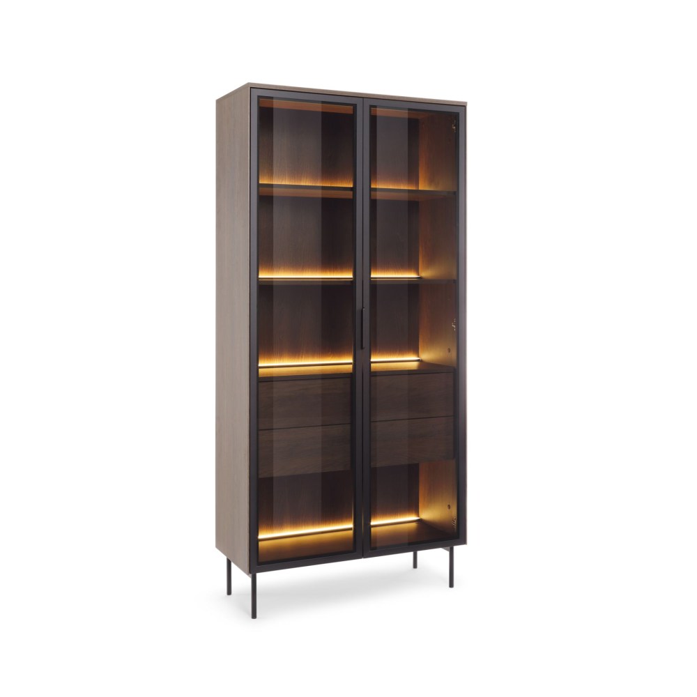 Lumi em Carvalho Dunin é uma opção elegante e funcional. Seu design exclusivo torna a coleção não apenas uma peça de mobiliário esteticamente agradável, mas também uma solução prática de armazenamento, conferindo um toque pessoal a qualquer ambiente. As frentes de vidro temperado protegem o conteúdo dos armários contra poeira e danos, permitindo que você exiba seus itens favoritos. Pés e puxadores de metal preto adicionam um toque de leveza ao móvel, enquanto a iluminação cria uma atmosfera aconchegante.
